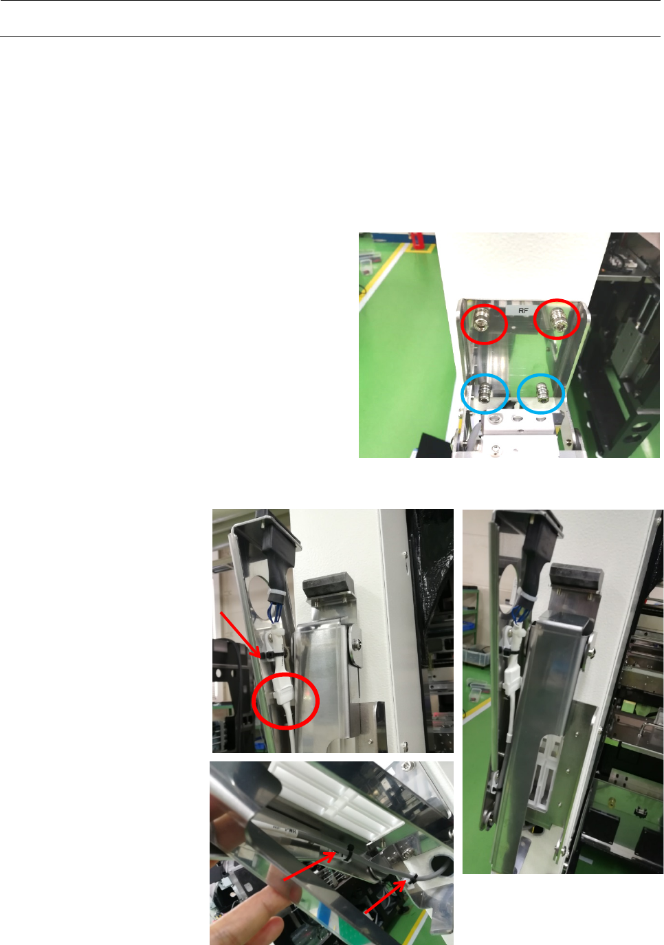 2. 连接电线束(红圈部),以捆束带固定。(红色箭头部)。