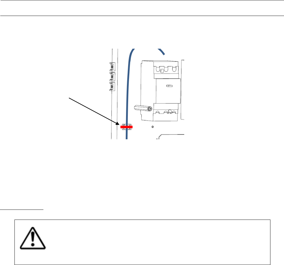 5. 将工厂侧一次电源缆线的三相电源线接到断路器端子(L1、L2、L3), 并把接地线连接到本机的框架