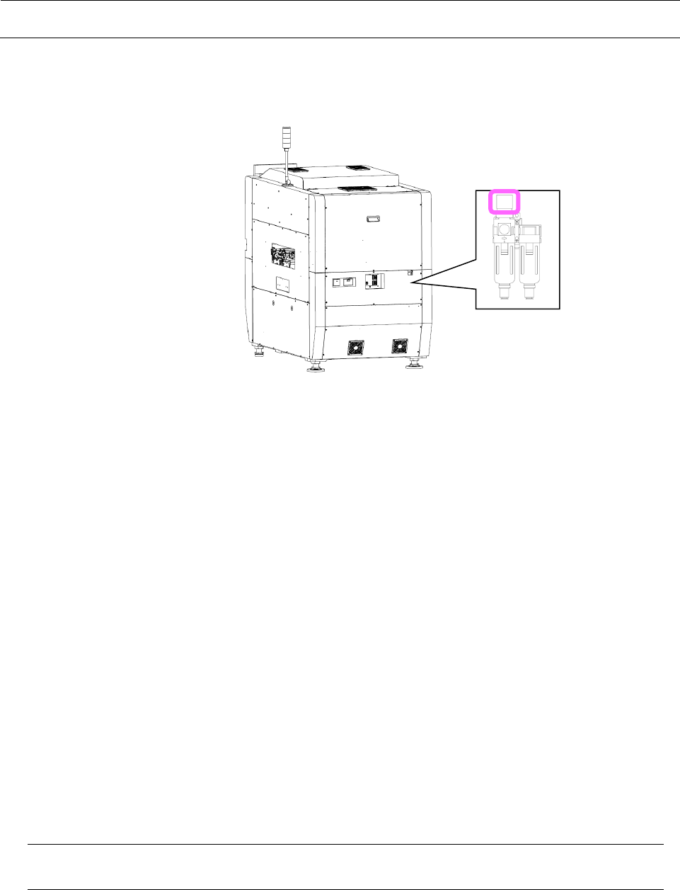 4. 在空气单元中的压力计的显示达到 0.49 Mpa 前,沿顺时针方向慢慢旋转空气单元/过滤减压阀的调压