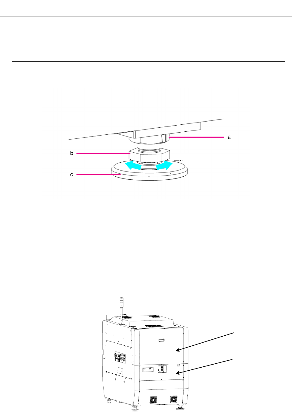 2. 为了对准本机前工序和后工序的基板搬送高度,要用扳手旋转底部脚(4 个)的六角螺母来调整基板