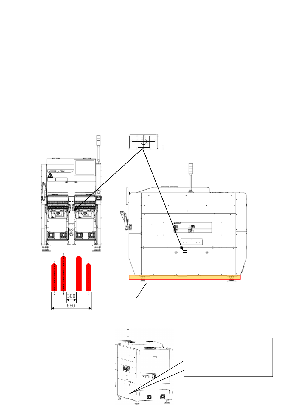 安装要领书 3 第 2 章 机器主体的移动方法 <程序> 用叉车移动时,请把叉车的爪从主体前方放入,确认叉车爪全部伸出主体的后方之后,再抬起移动。 <注意> 1. 用叉车移动时,请把货物重心标志放到叉车爪的中央位置。(板条货架也同样。) 2. 请将铲爪间距尽量扩宽,按下图所示插入本机之下,并使铲爪前端从本机露出,然后提升。 3. 请勿在信号灯竖立的状态下用叉车移动。 (板条货架也同样。) ・ 变压器(根据规格有设定) ・ 分接头 拆下侧…