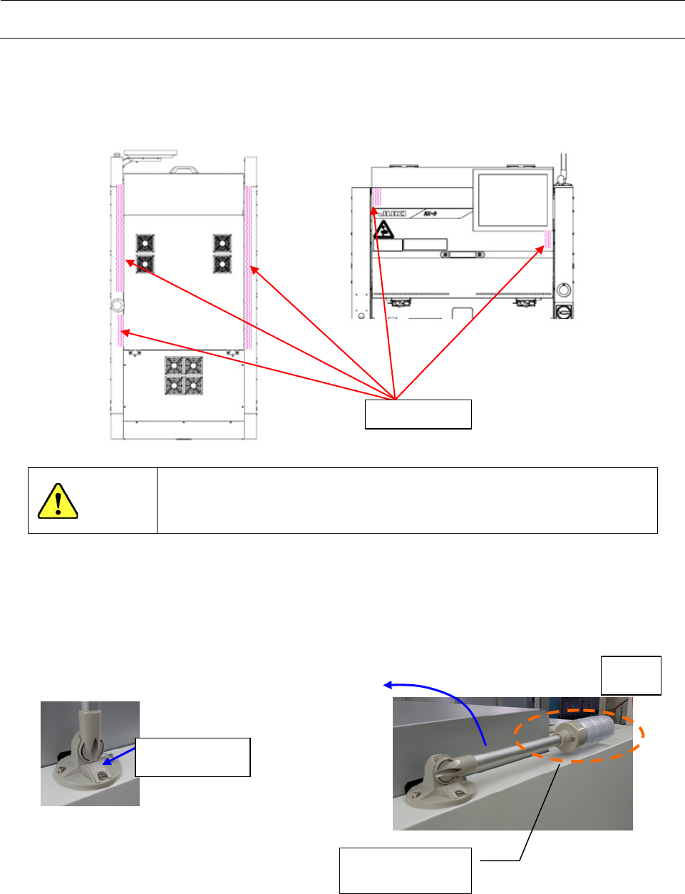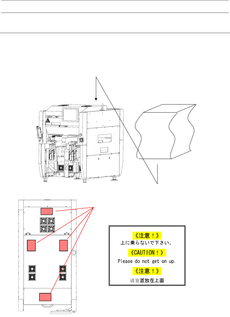 安装要领书 5 3-2 安全护罩、后侧养护盖 请剥掉粘贴在安全护罩上的纤维丝胶带。 注意 打开包装后,千万别在装置上面放置重物。 3-3 信号灯 ① 请拆下将信号灯固定在主体上的纤维丝胶带和信号灯部分的包装材料。 ② 请推动信号灯根部的滑片并同时竖起信号灯。 使滑动 拆下包装材料 后侧 纤维丝胶带