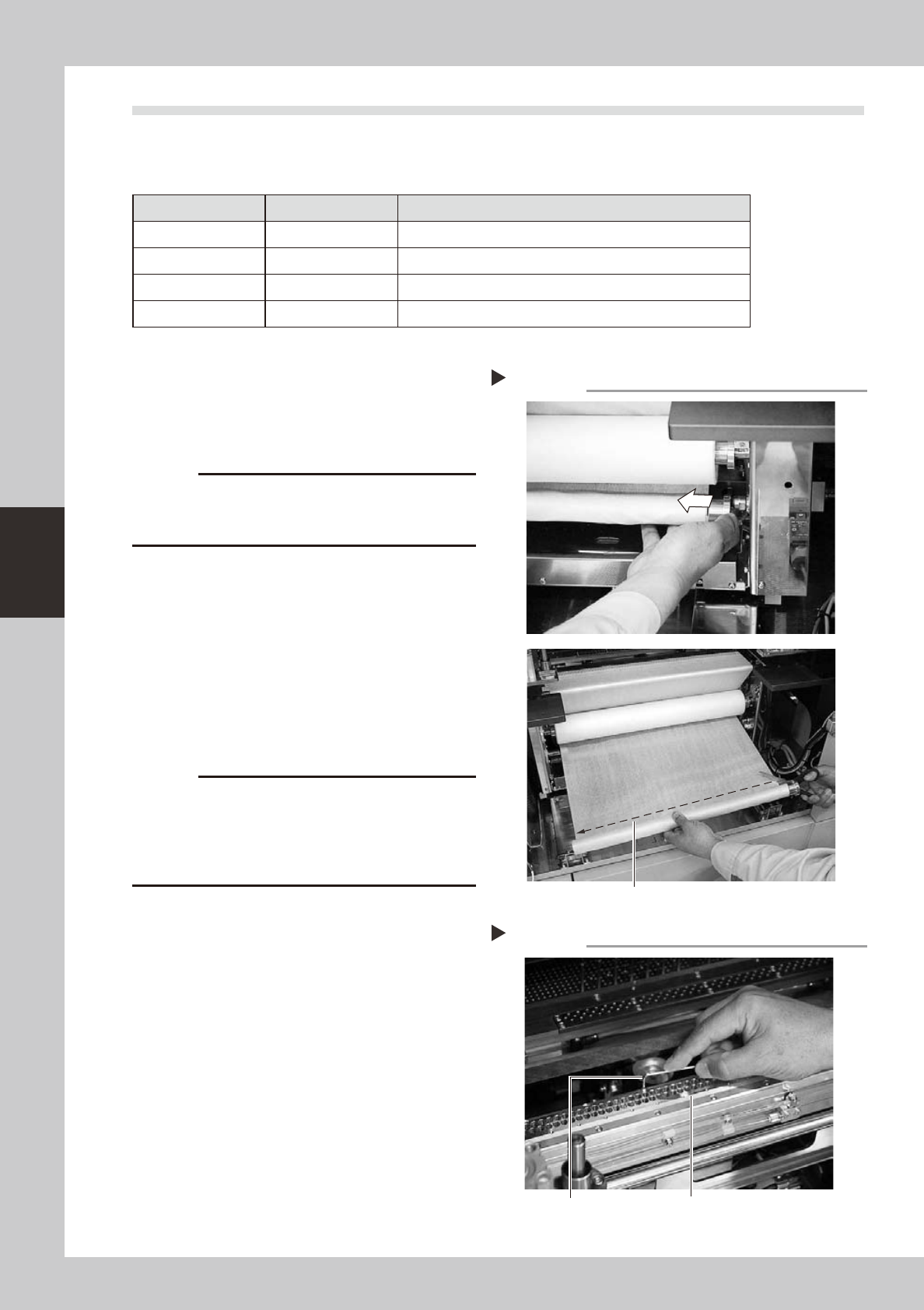 4-9 4 aily operation 6 F eed the gauze roll through the guides. While keeping the parallelism between the left and right, feed the gauze roll thr ough the guides as shown in the figure on the right. 63406-N3-00 c …