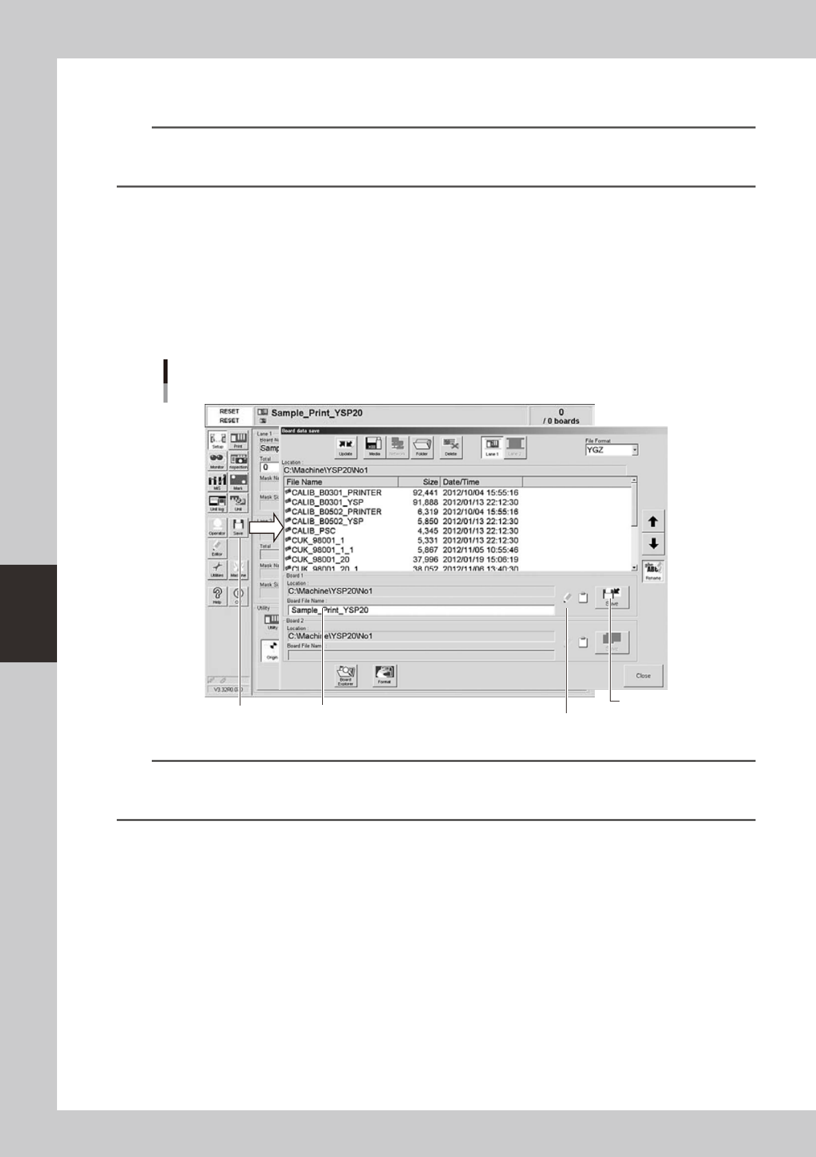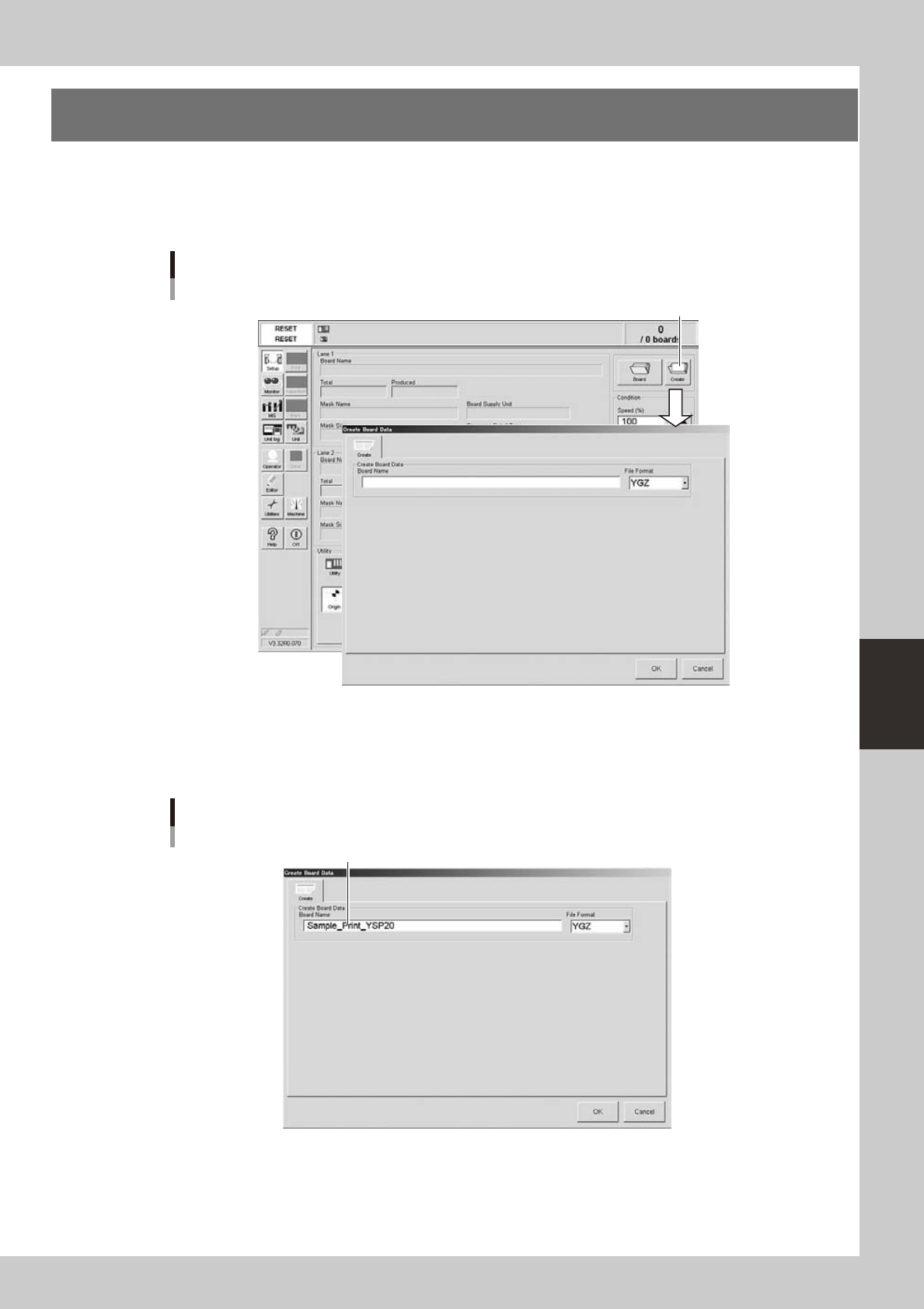 5-2 5 Creating and setting the data 3 Pr ess the [OK] button. The display returns to the Setup screen. TIP An alert dialog box appears if a board data with the same name has already been registered. If this happens, pres…