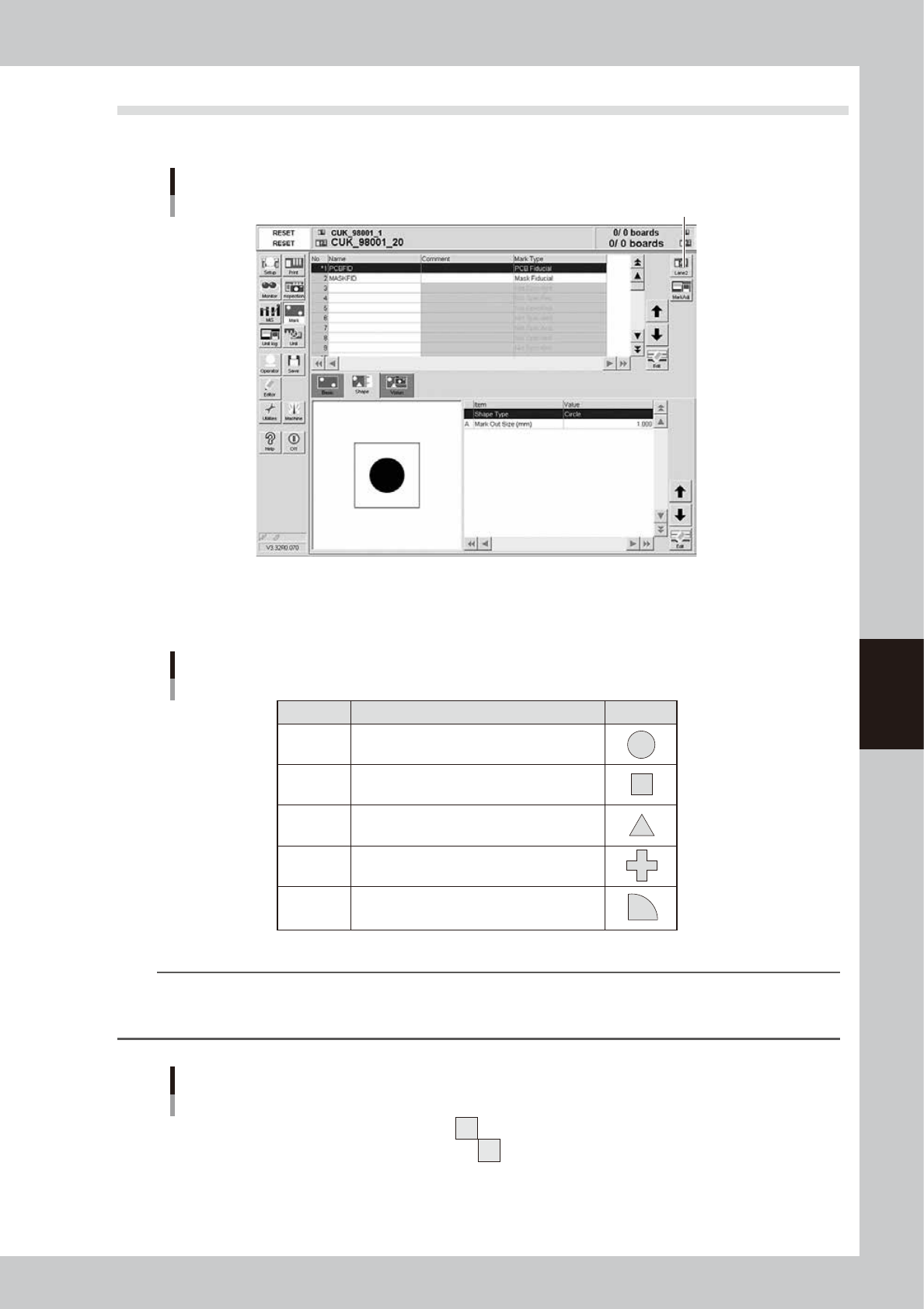 5-34 5 Creating and setting the data A, B: Mark Out Size Referring to the table below , enter the correct v alue in the mark size. T he "Mark Size X" is display ed when "Mark T ype" on the [Basic] tab…
