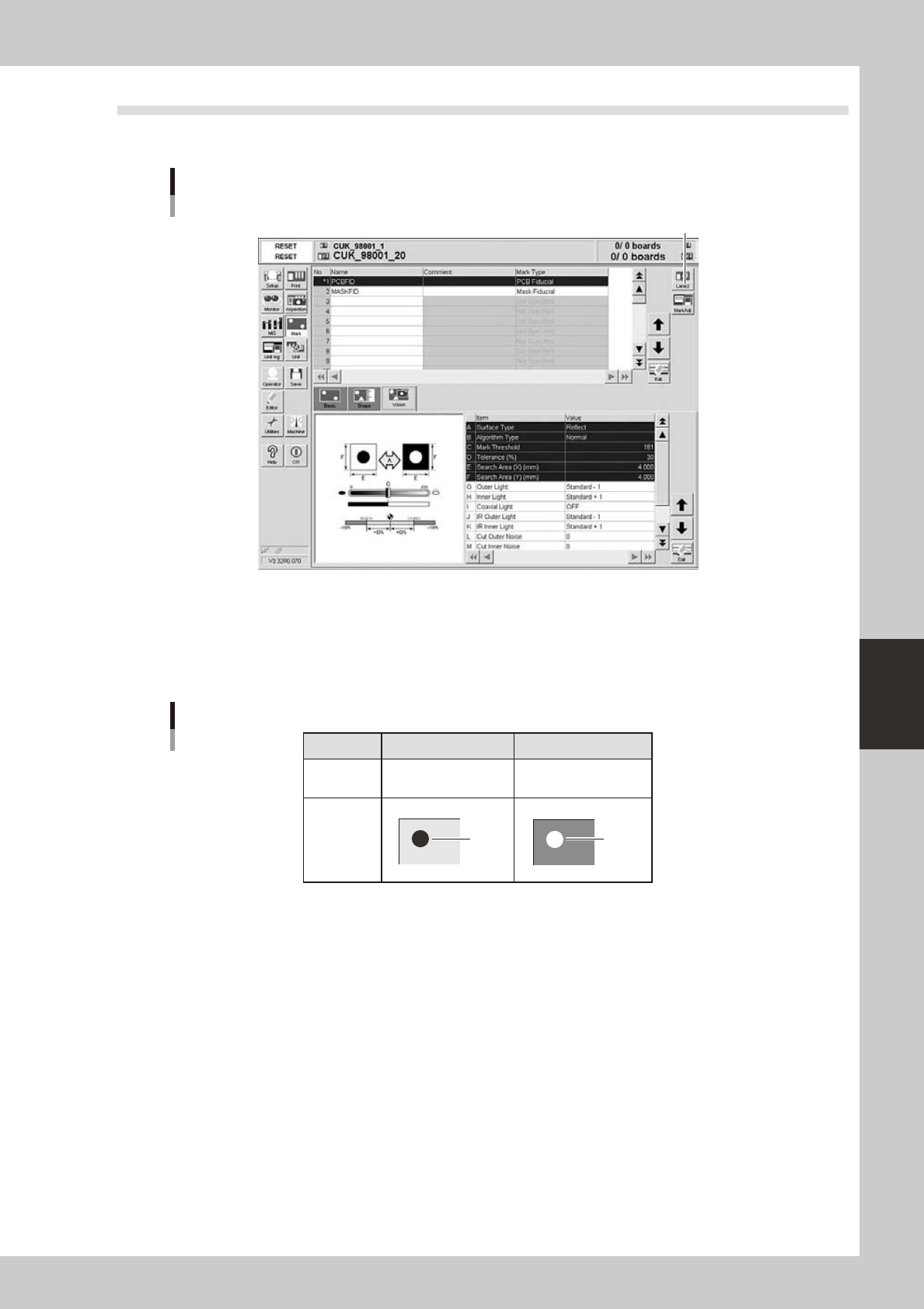 5-36 5 Creating and setting the data D: T olerance T his specifies a tolerance percentage for the mark size when the mark is recognized with the vision camera. (T ypically this should be set to "30".) E, F: Sea…