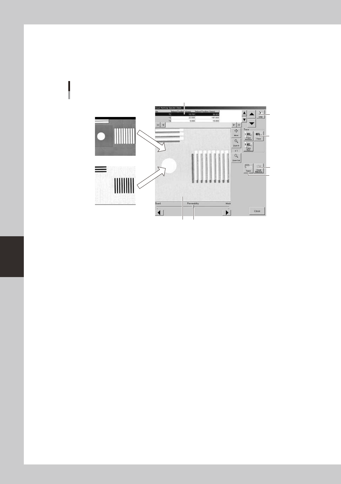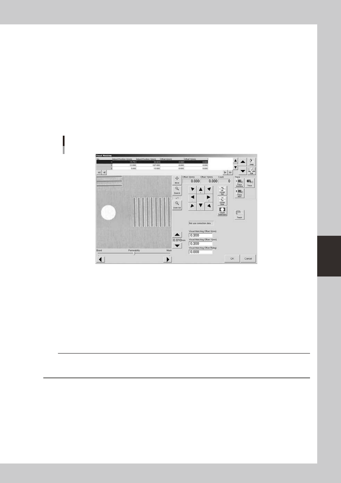 5-43 5 Creating and setting the data 5 Pr ess the [Visual Matching] button. If a position offset (deviation) is found by graphic or visual alignment, you can adjust it in the "Visual Matching" screen that appea…