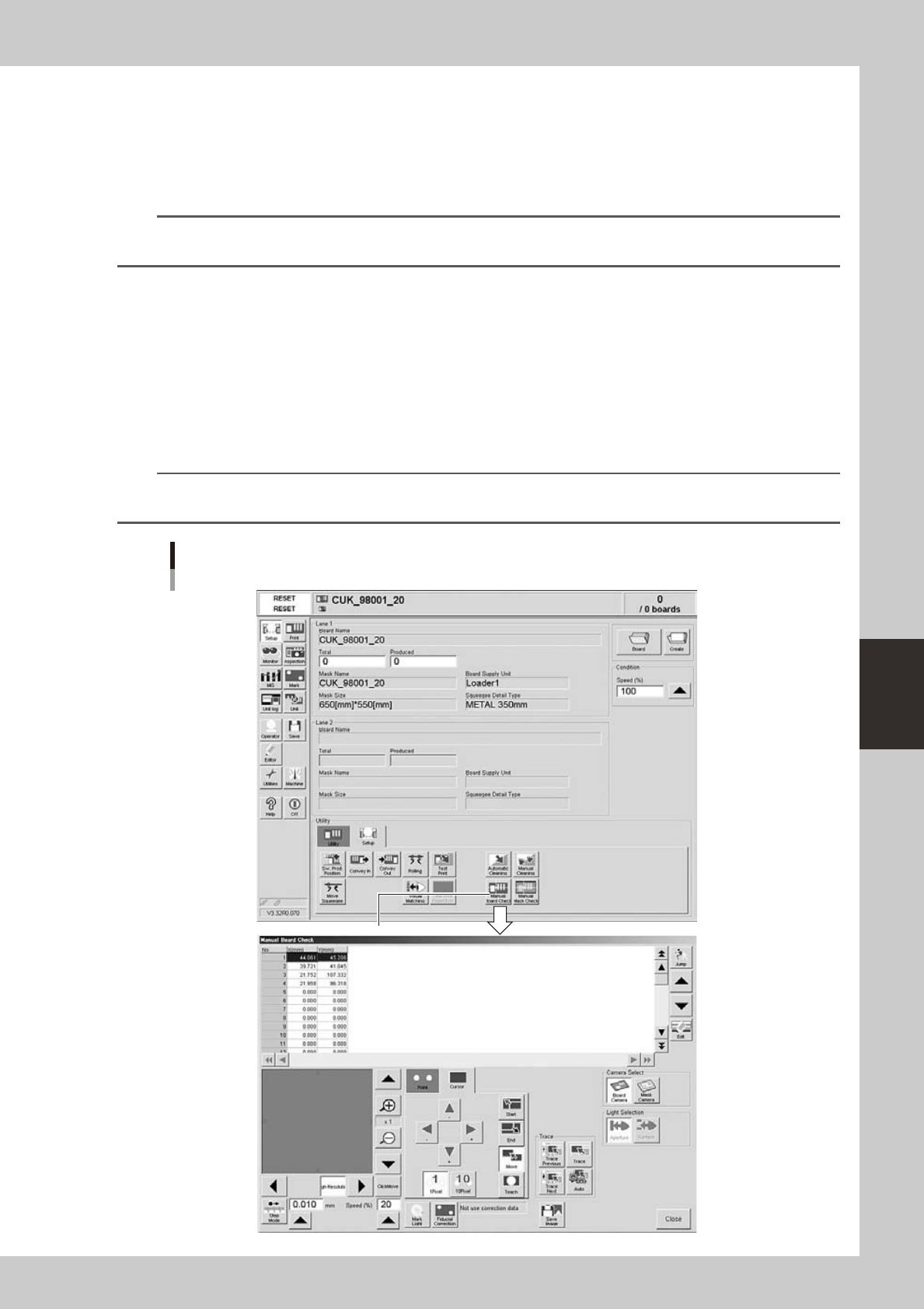 Manual board check screen
