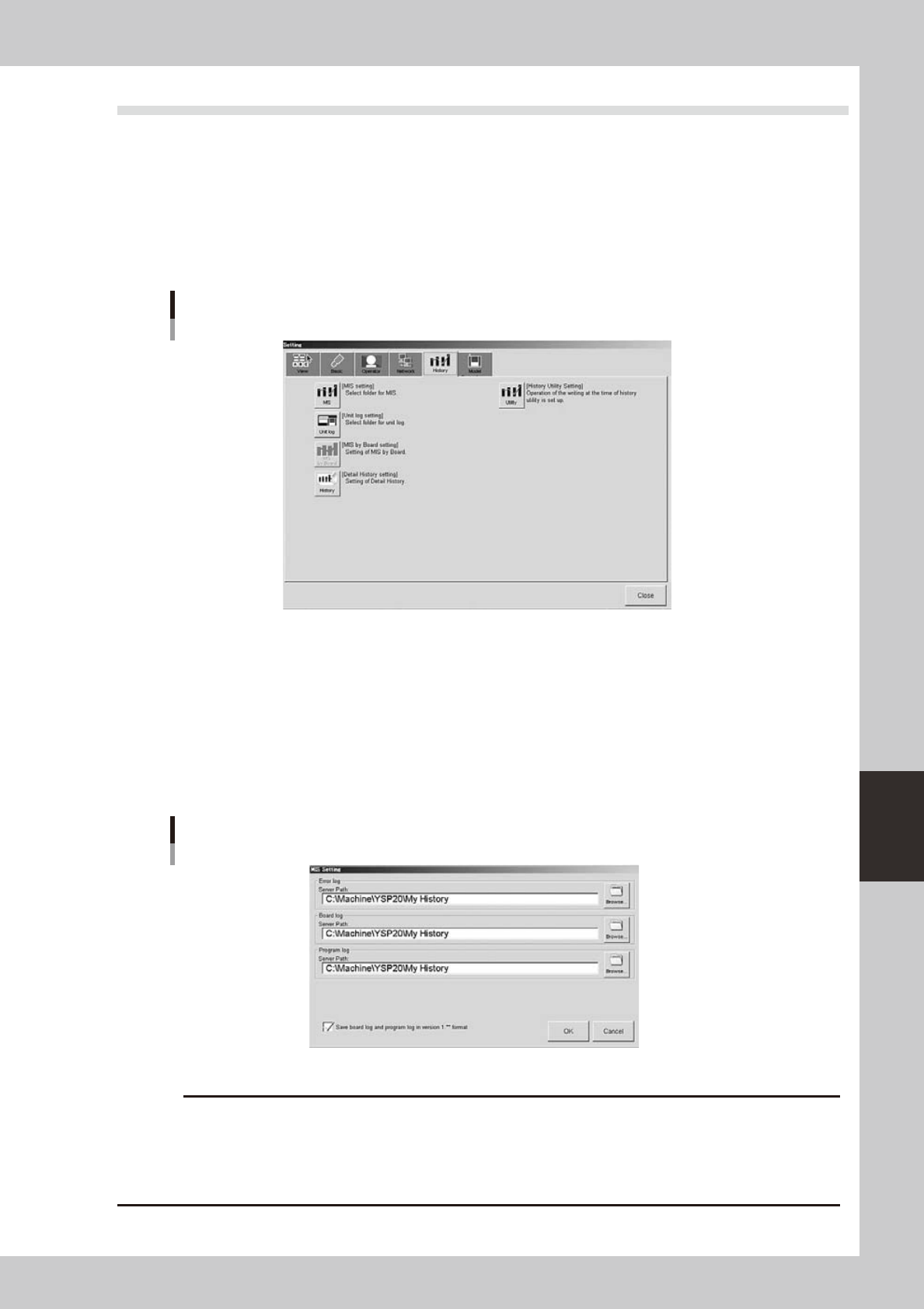 folder separately for "Error log", "Board log" and "Program log". After finished setting, press the [OK]