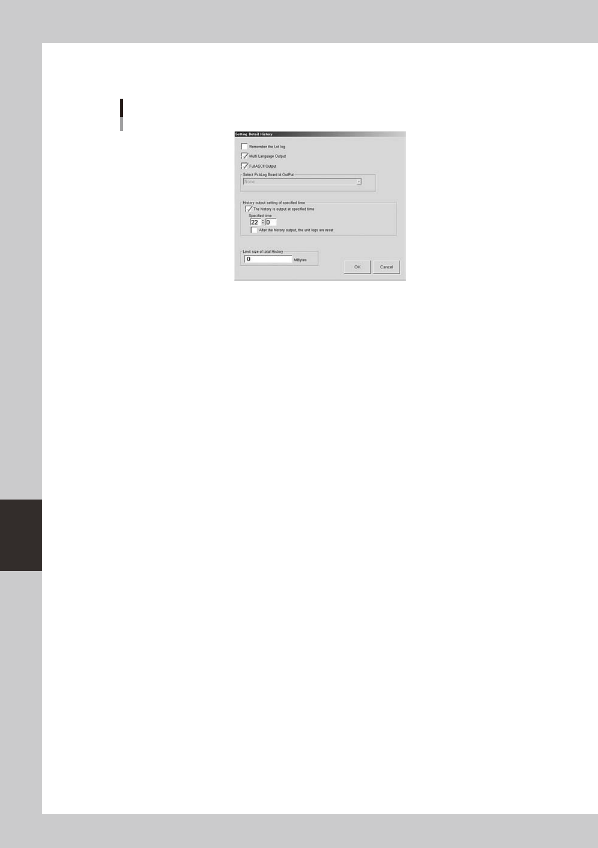 • "History output setting of specified time" check box