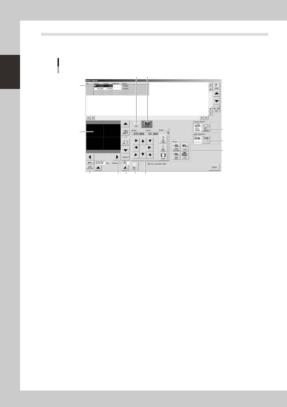 Use the [Teach] button in this dialog box to teach the machine a board inspection position or move the machine to a