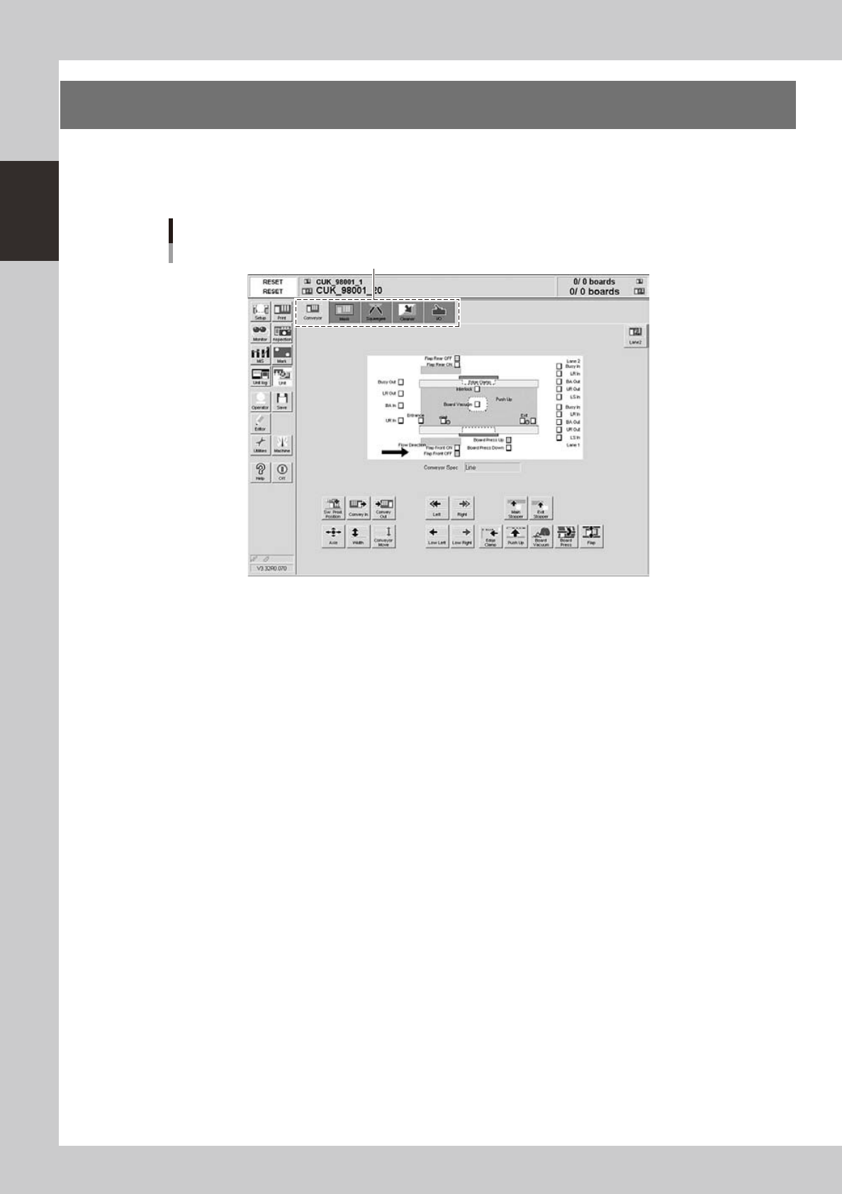 as [Conveyor], [Mask], [Squeegee] and [Cleaner] to allow manually operating the servo-controlled units. You