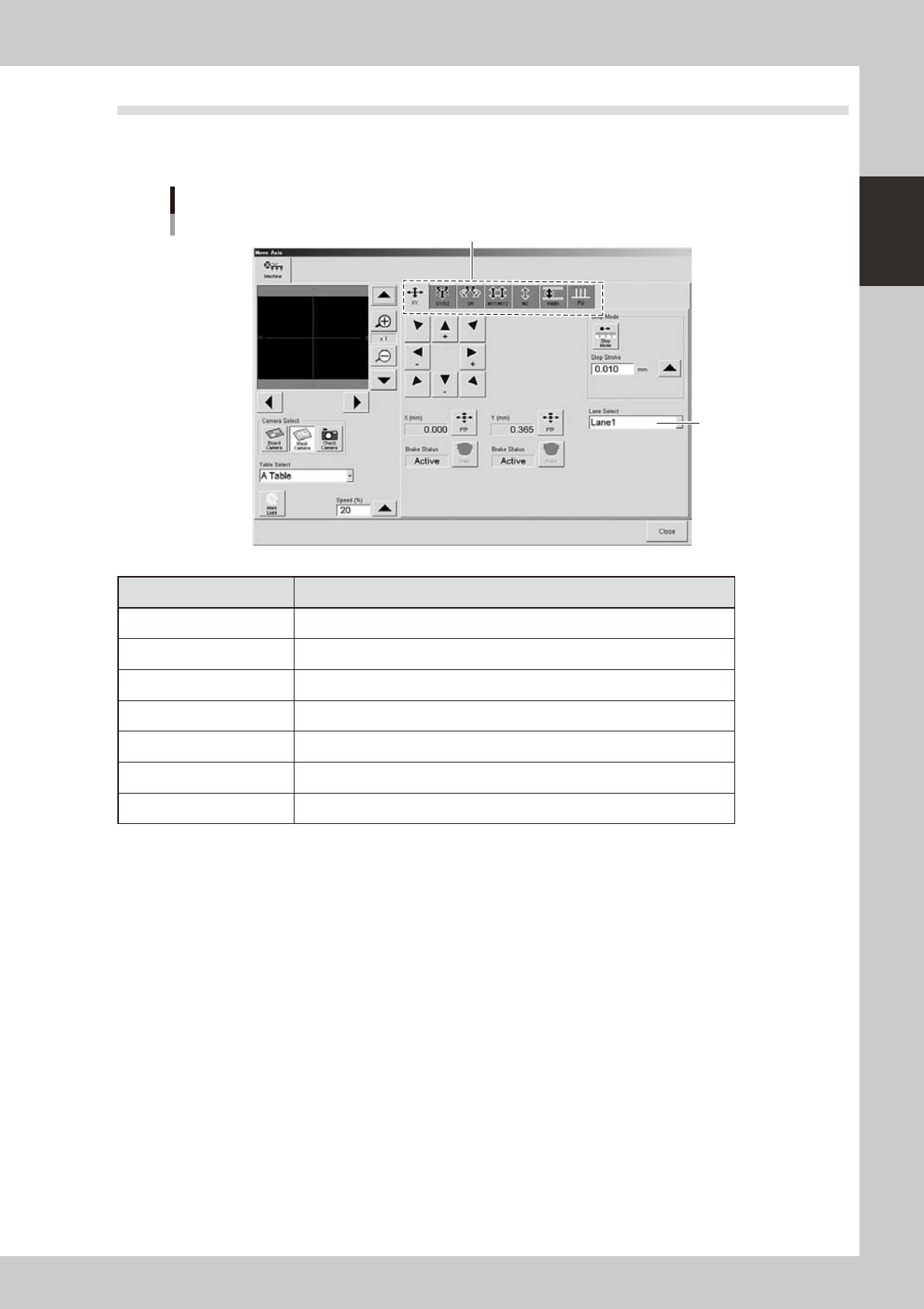 [Axis] button Opens the "Move Axis" screen. (See "4.1" in this chapter.)