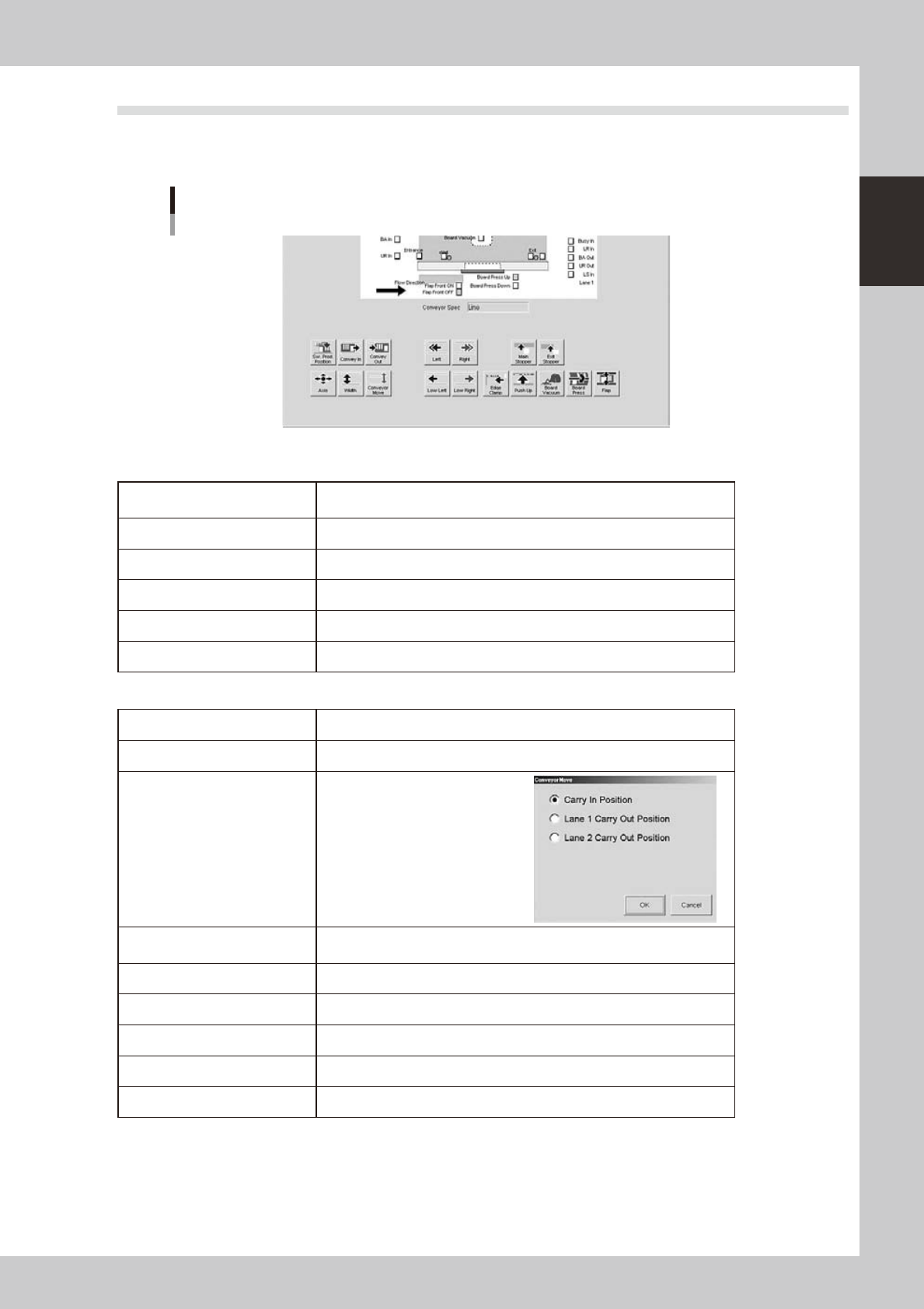 the conveyor sensors and I/O signals on the graphic view. The function of each button is described below.