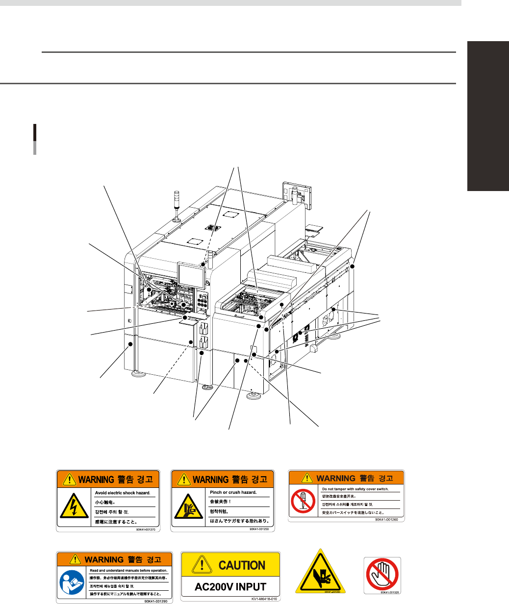 Basically, labels are attached to the positions shown below, although they may differ slightly depending on the