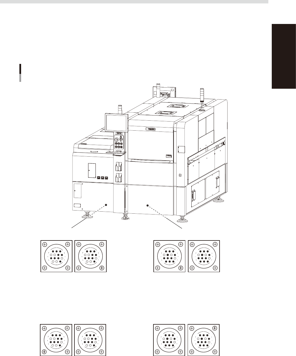 "NEXT INTERFACE" and "PREVIOUS INTERFACE" connectors located on the rear of the machine are used. The