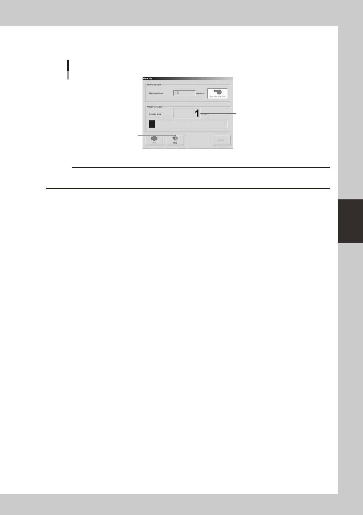 Warm-up will automatically stop when the time you set is reached. Press the [Close] button, and return