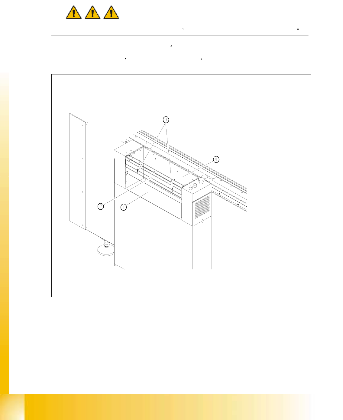 悬臂的定位范围包括在两个保护罩之内 如果要打开保护罩 首先按下 Stop(" 停止 ") 按钮 ( 图