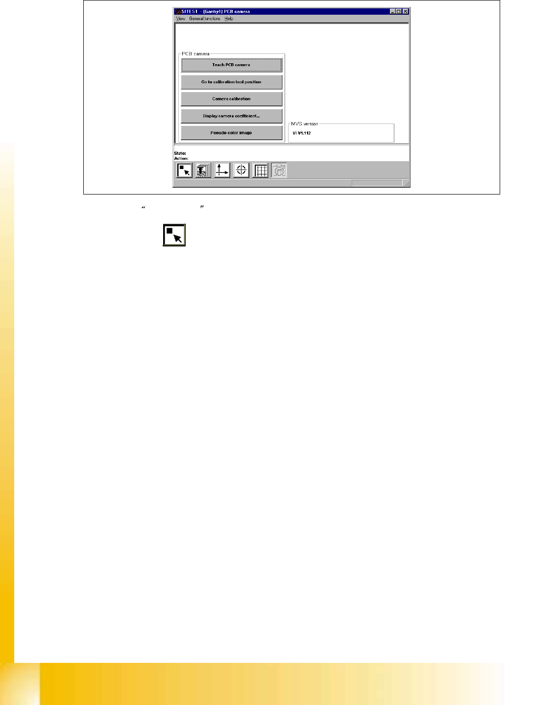 S 20 系列维修培训指南 I 2000 年 6 月版 8 校准 35 8.7 8.7 8.7 8.7 机器的 调 试和校准 机器的 调 试和校准 机器的 调 试和校准 机器的 调 试和校准 8.7. 1 8.7. 1 8.7. 1 8.7. 1 PCB 照 相机的校准 PCB 照 相机的校准 PCB 照 相机的校准 PCB 照 相机的校准 例 PCB 照 相机 悬臂 1 (S IPLACE S-23) ! 把校准工具放在 校准件 安 …