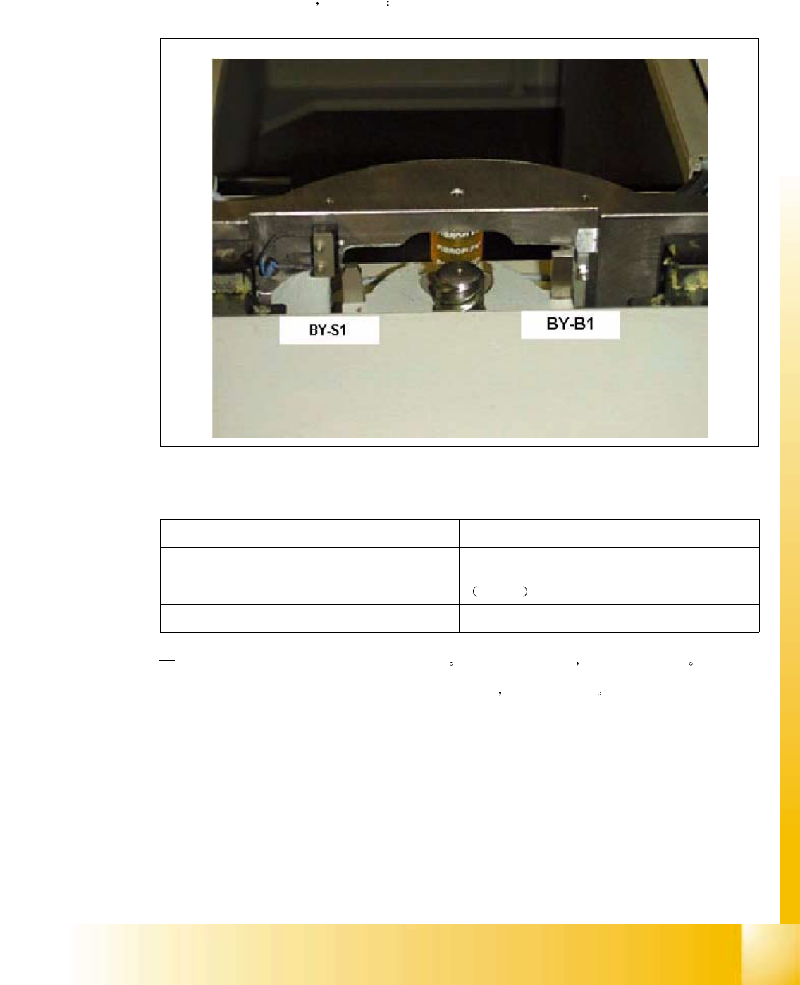 S 20 系列维修培训指南 I 2000 年 6 月版 10 华夫盘交换器 11 10.1.8 升降轴接近开关和微动的位置 升降轴接近开关和微动的位置 升降轴接近开关和微动的位置 升降轴接近开关和微动的位置 位于 1 号料盘 下部和 前 部 如下所示 Fig. 10.1 - 5 升降轴接近开关和微 动的位置 图例 图例 图例 图例 BY-S 1 微动开关由 此 处所示的触发 铁块触发 触发铁块是可 调的 可用软件 来控 制 BY-B 1…