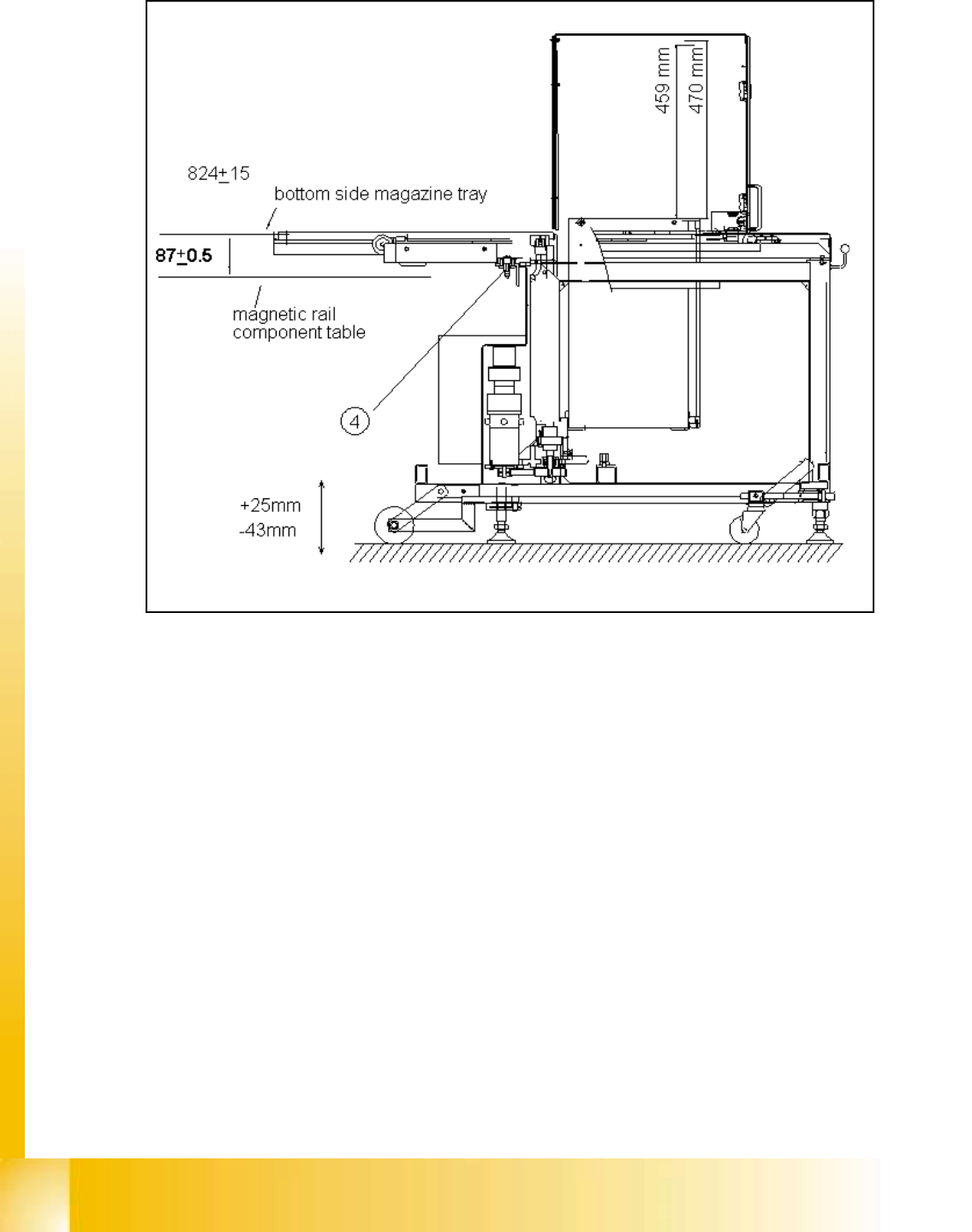 测量从供料轴轨道顶部到料台面 部的WPC高度 正确的高度应该是87 ± 0.5 mm (见图10.5-1WPC