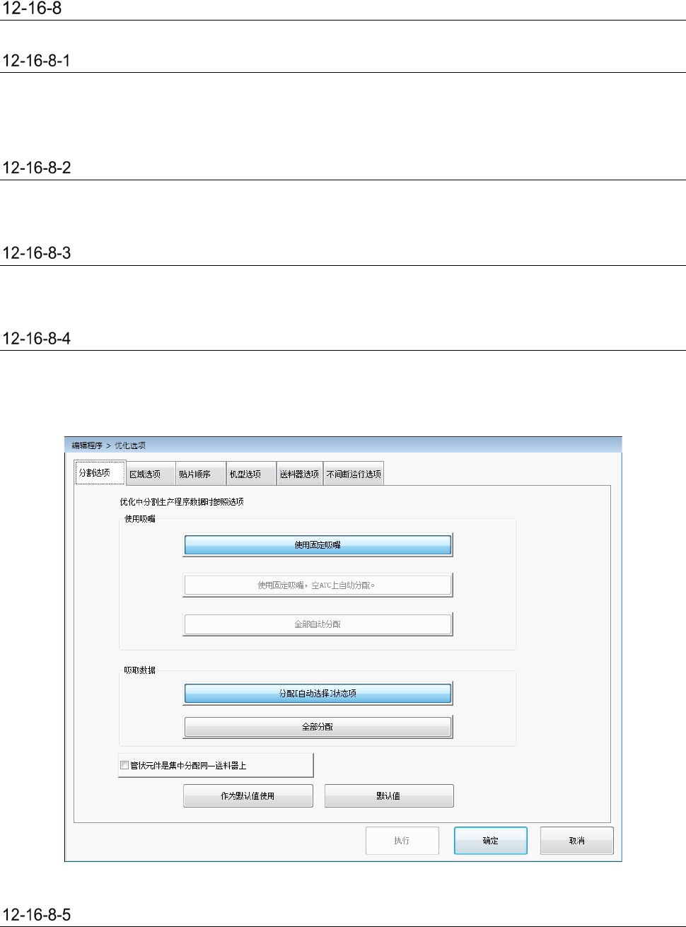 在[使用单元]-[Head] 页面上将「手动吸嘴」功能设定为使用,则[优化选项]-[分割选项]-[使用