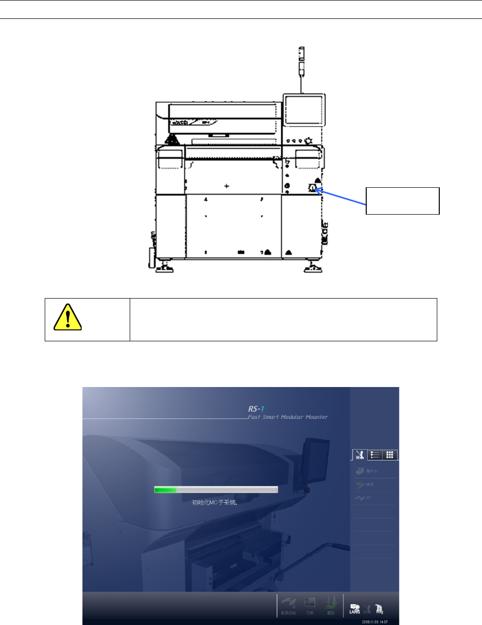 第 1 部 基本篇 第 2 章 生产 2-5 2- 3 设备的启 动和 退出 2-3- 1 设备的启动 (1) 向右旋转主机正面 中央 的「 主开 关 」 ,接通电源 。 注意 在系统完全退出之前 ,请勿关闭主开关 ,否则会导致 SSD 故障。 (2) W indow s 启动后,会显示下 列启动画面。 主开关