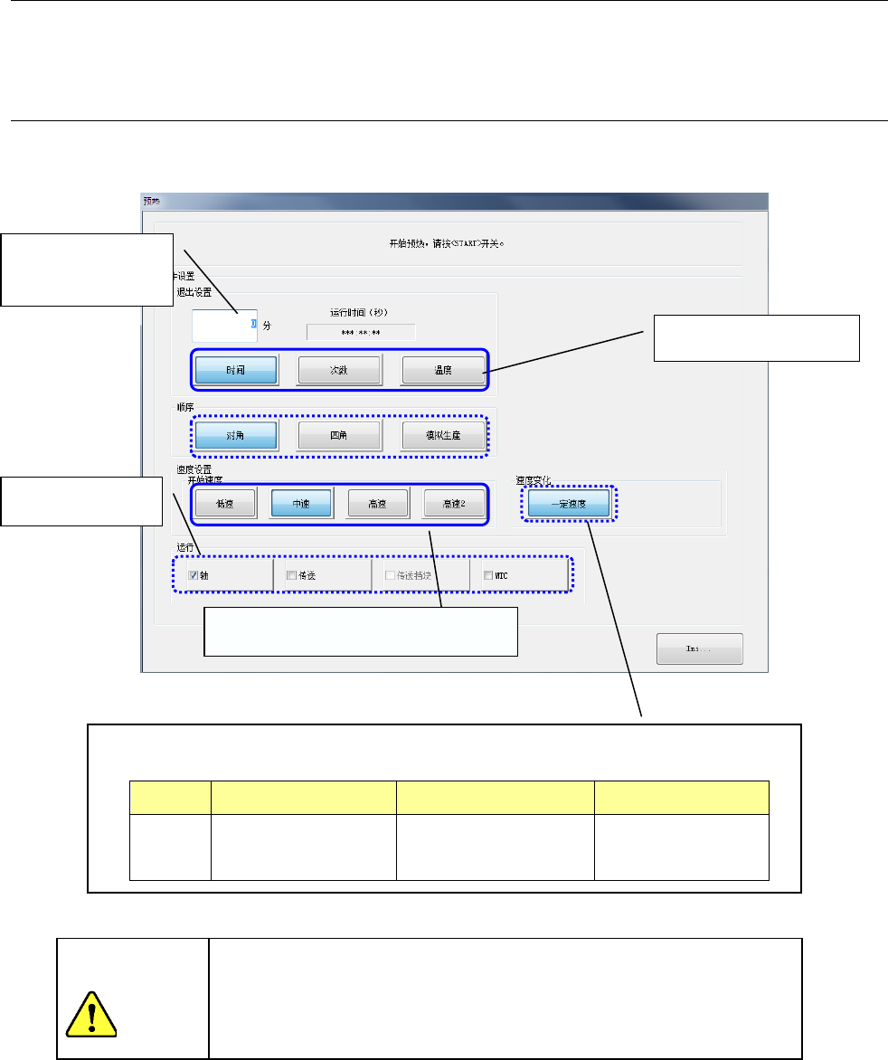 从主画面的菜单中选择[生产]-[预热]后,显示如下预热初始化画面,请设定预热条件。