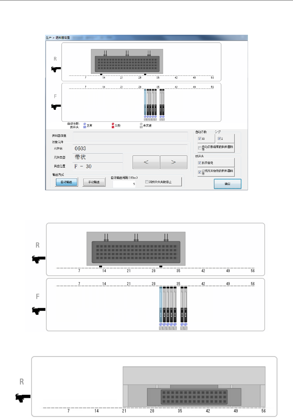 画面上部显示选择的生产程序中使用的供料器的供料器布局。