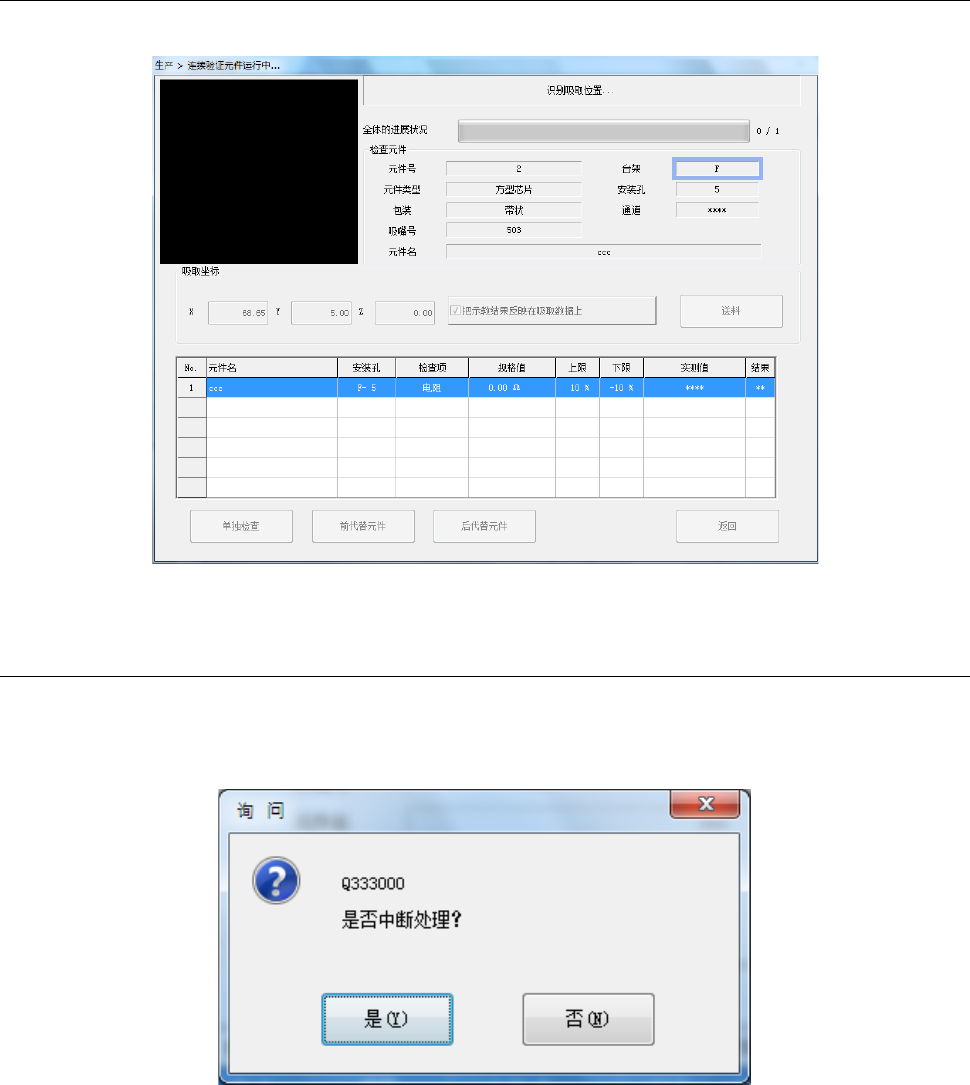 连续检查中,会显示正在进行检查的元件内容,逐次显示执行中的进展状况和检查结果。