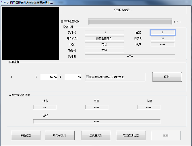 在长宽尺寸(长边/短边)中显示激光识别的元件尺寸。在状态中显示检查后的结果,识别方