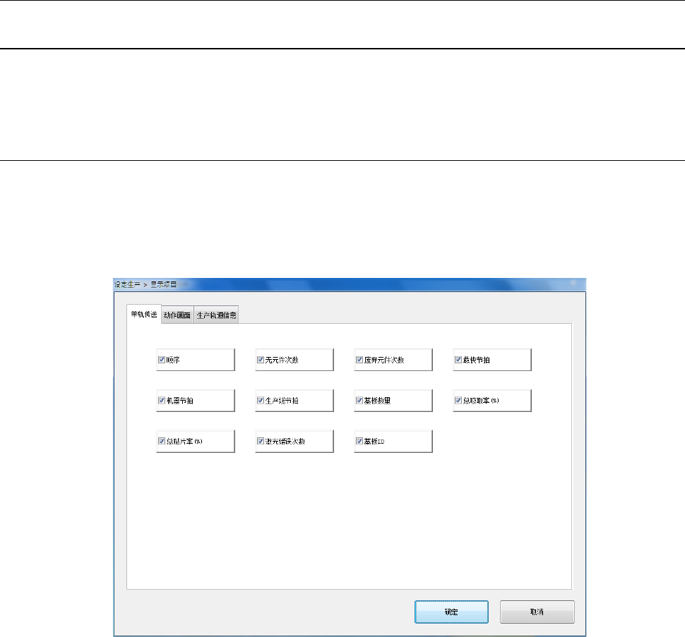 可在「单轨传送」选项卡中设置单轨生产中生产状态画面项目的显示/隐藏。