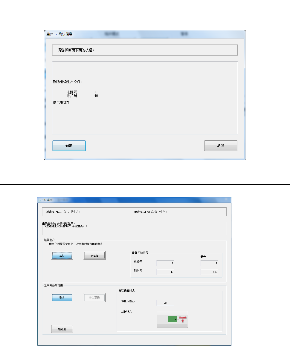 开始继续生产前,传送通道上有基板时,即显示基板重夹画面。