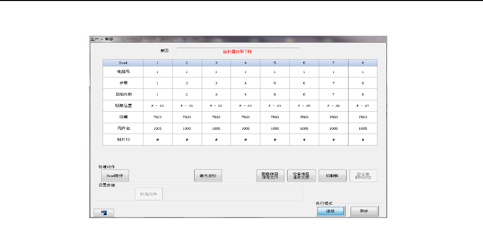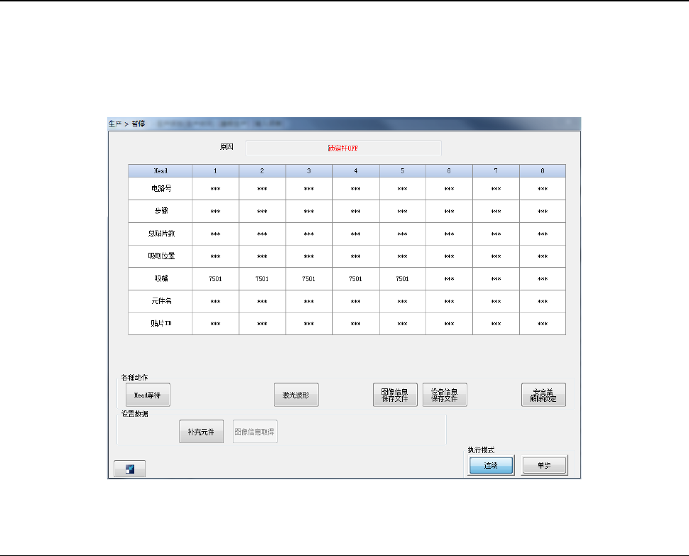 在生产动作中如果供料器台架下降,生产将暂停,显示暂停画面。