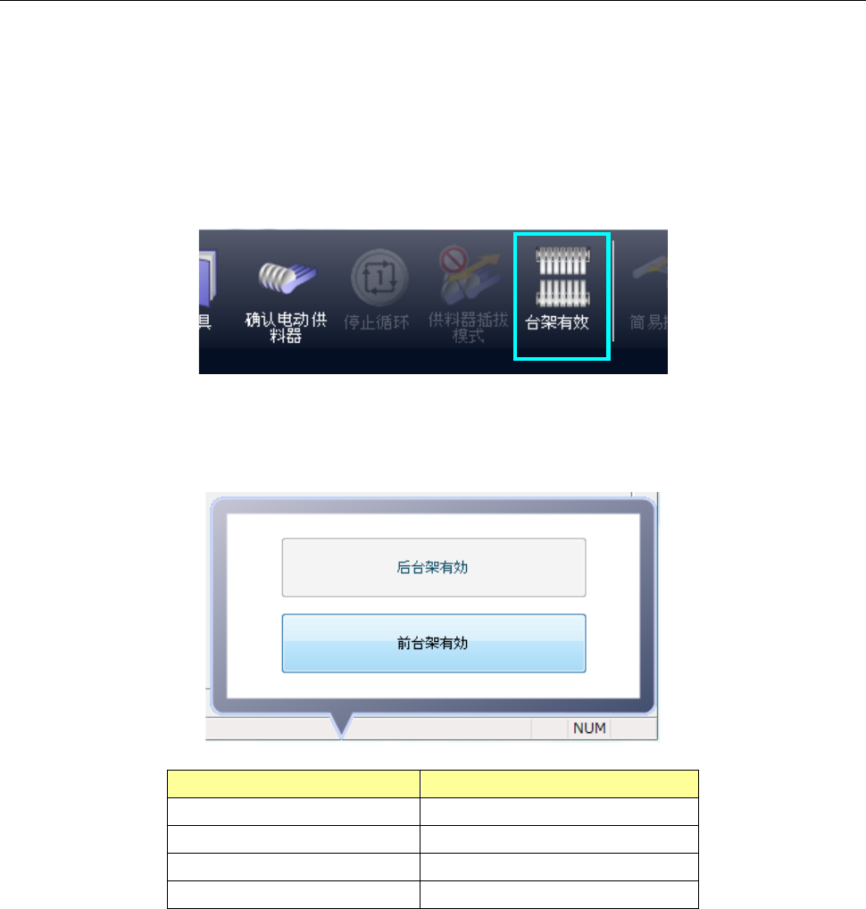 (1) 确认更换侧供料器台架处于无效。处于有效时,请将对应侧(前/后)的台架置为无效。