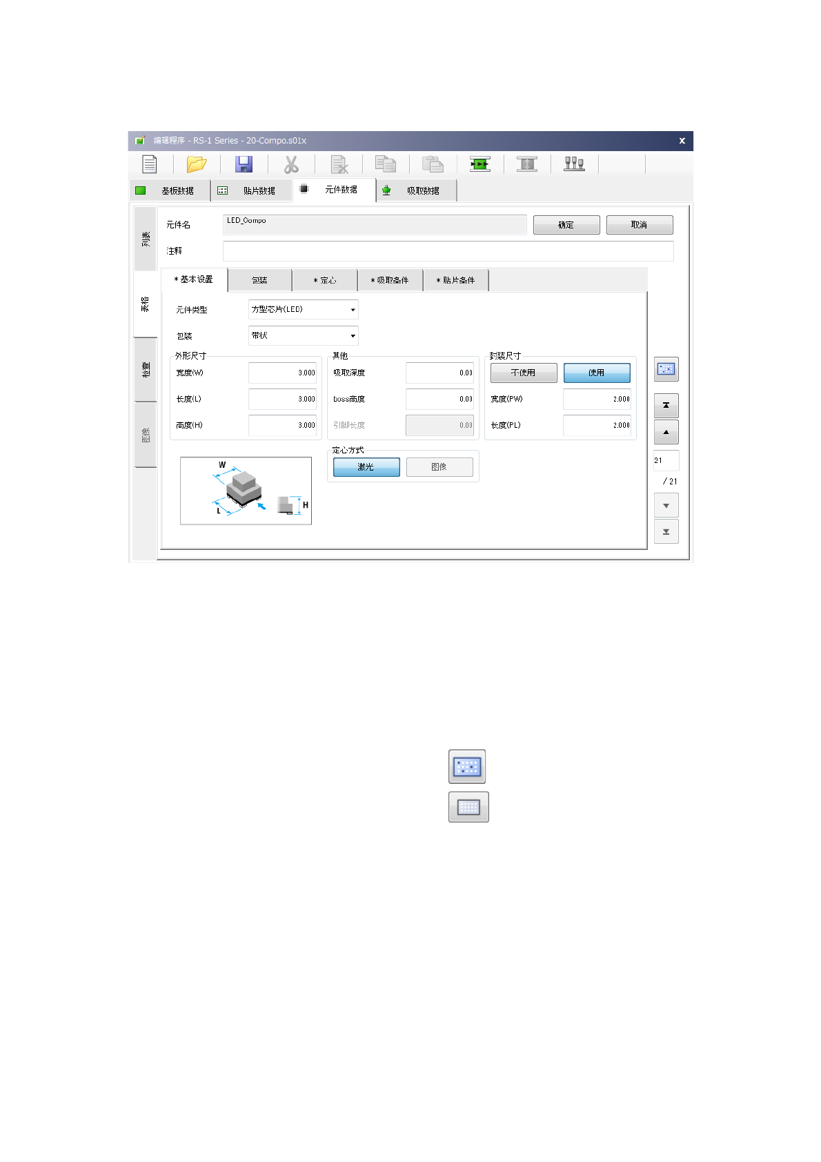 「元件数据」,是针对在「贴片数据」中输入的“元件名称”输入详细的信息数据。