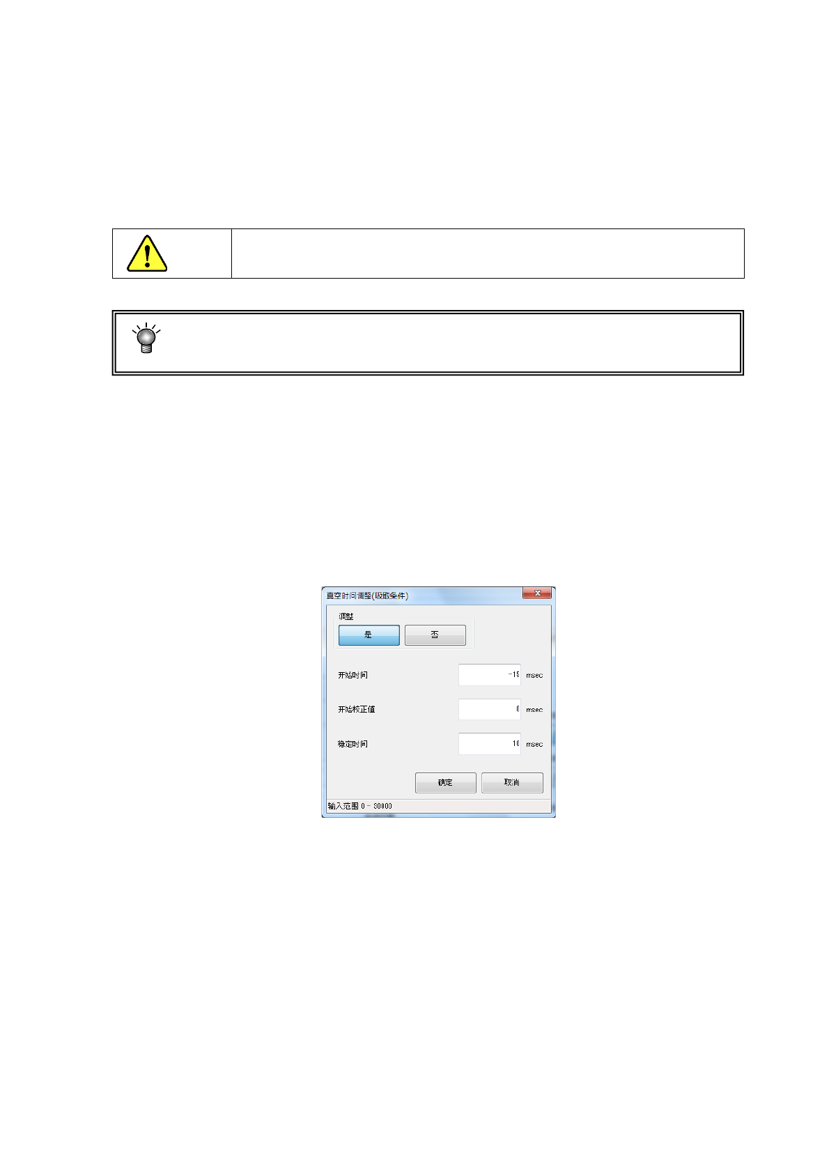 将调整设定为「是」,可按照 ms 为单位输入“开始时间”、“开始校正值”、“稳定时间”的调整。