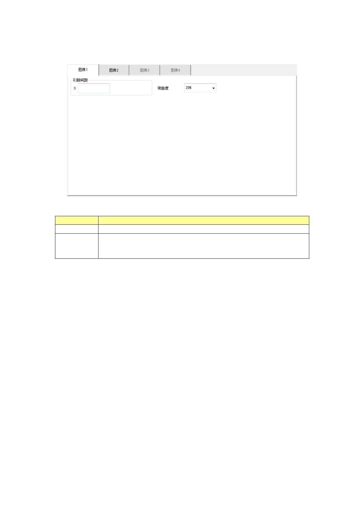 在「图像 1」选项卡中设置引脚间距及弯曲度。