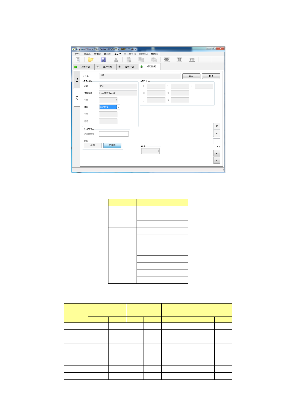可在表格画面中编辑“角度”、“供应”、“位置”、“通道”、“送料器类型”、“状态”、“吸取坐标”、“剩余” 8