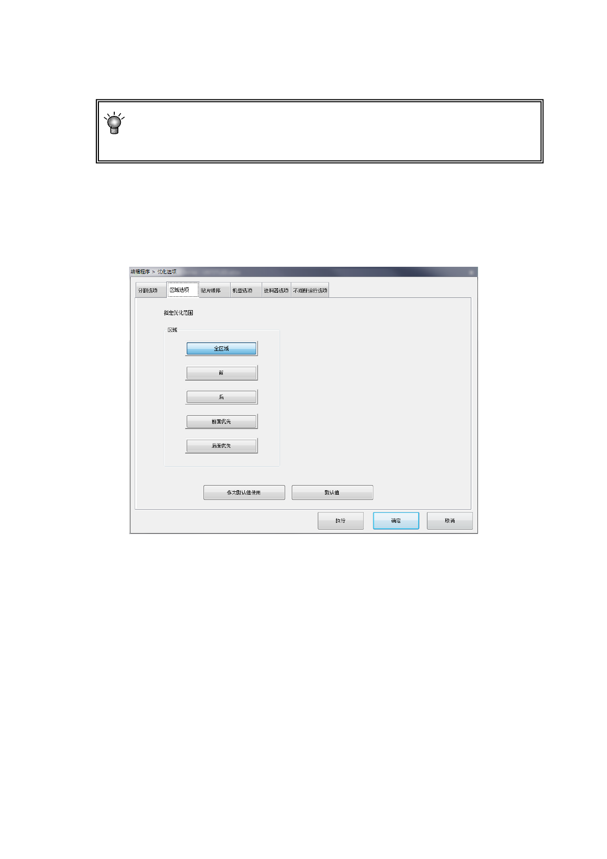 区域选项 设置可配置供料器的区域。