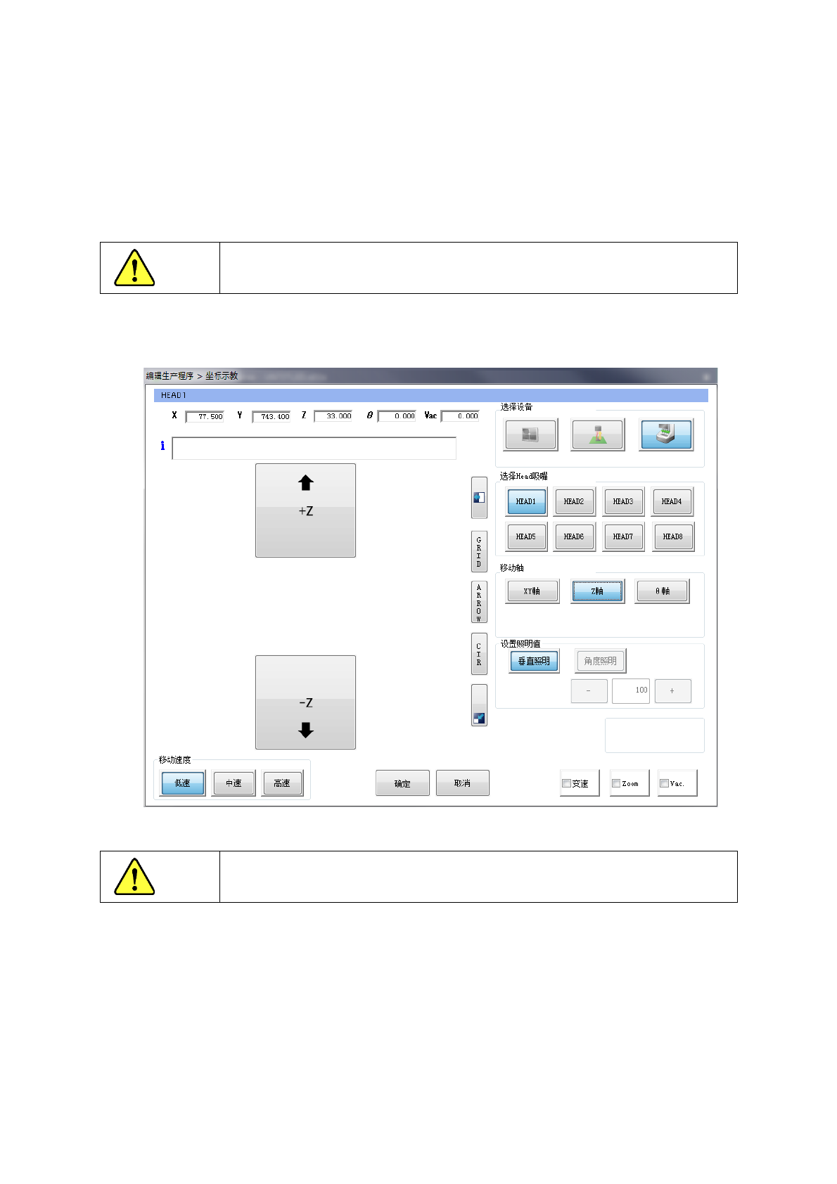移动轴中选择 Z 轴的状态下,按画面左侧的上下方向箭头按钮,Head 即进行 Z 移动。