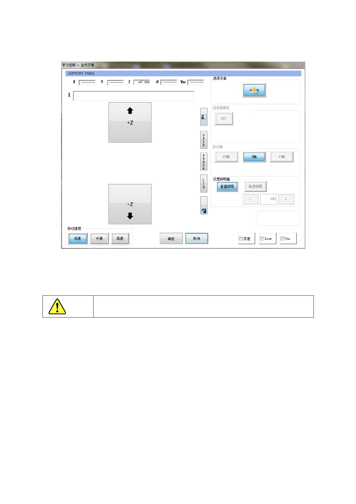 按画面左侧的上下方向箭头按钮,支撑台就会上下移动。
