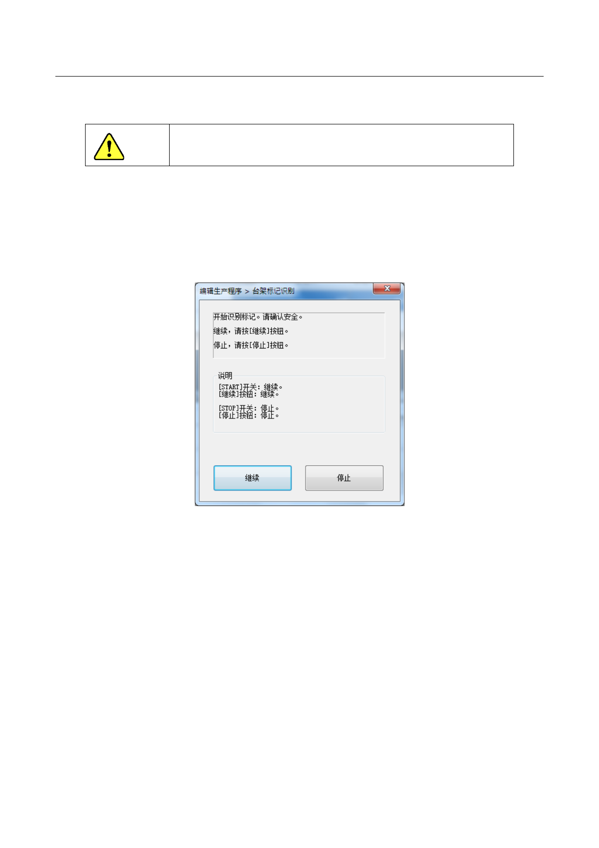 第 1 部 基本篇 第 4 章 制作生产 程序 4- 216 4-5- 6 - 3 供料器台架标记 此功能用于确认生产 程序的编辑内容。 识别供料器台架标记 后,识别坐标的实 测值被储存起 来,反映在吸取数据 示教时的坐标修正 中。 注意 为了避免人身伤害, 在机器运行过程中 ,切勿将手和 头伸入装置内部。 ( 1 )台架标记 校准 从菜单选择「机器操 作」 / 「供料器台架 标记 (前) 」, 或者「供料器台架 标记 (后) 」 。 …