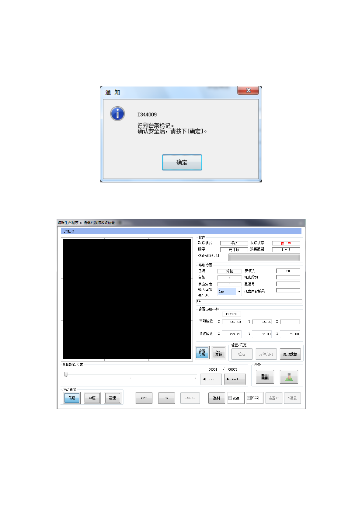 在向各供料器台架跟踪移动前,如果已设置了台架标记识别,为了提高吸取位置的精度,将执行台架