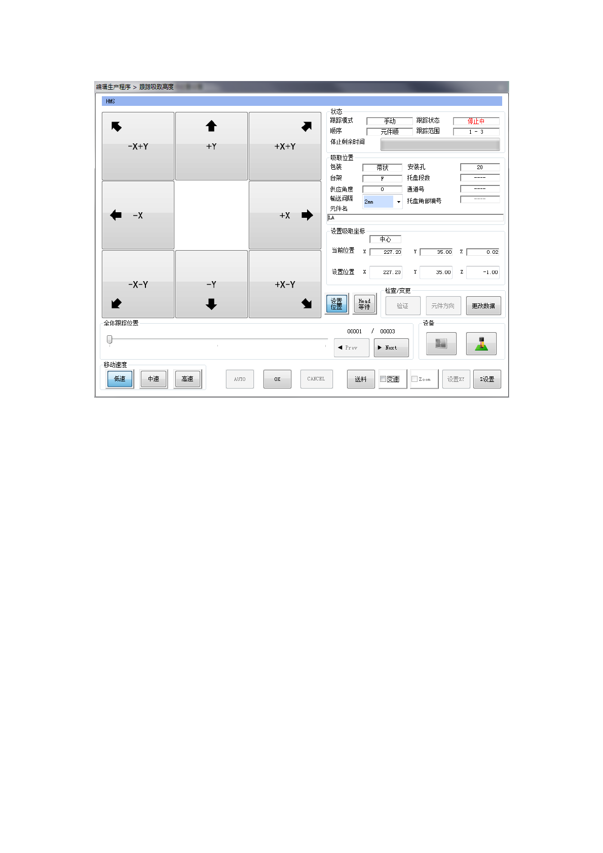 是跟踪中的元件吸取位置的 XYZ 坐标。