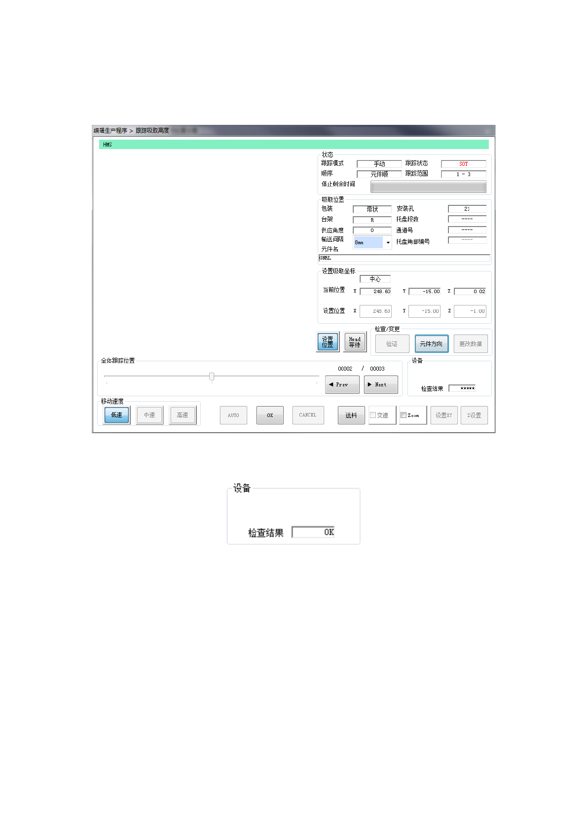 在跟踪暂停时,可进行元件方向检查。