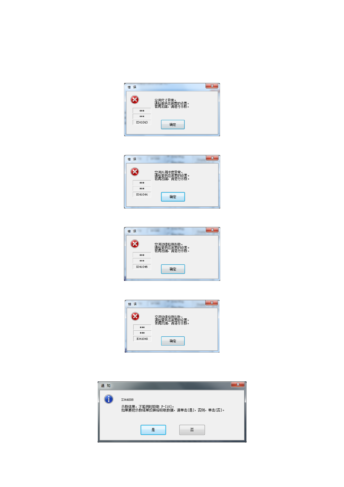 设置的吸取数据与自动示教校正的吸取数据差距过大时,显示如下错误提示。
