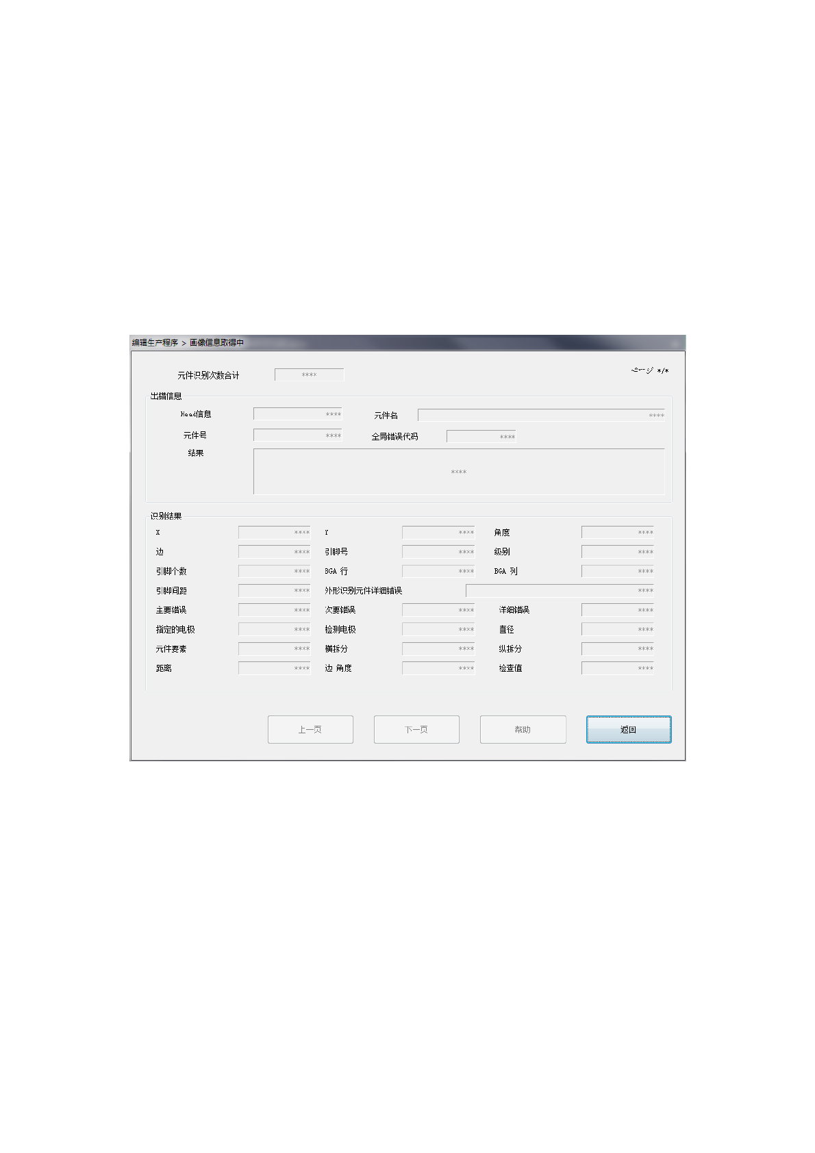 「上一页」:显示上一个图像识别错误时的信息。