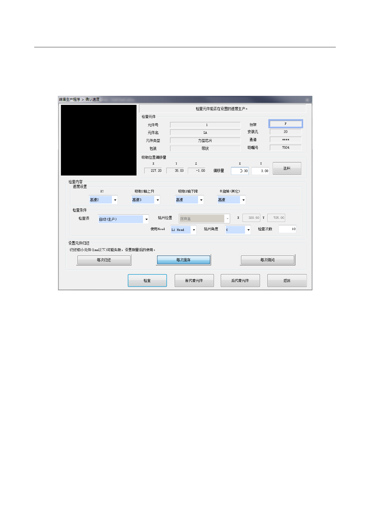 偏移值进行确认,以及判断生产程序的速度是否
