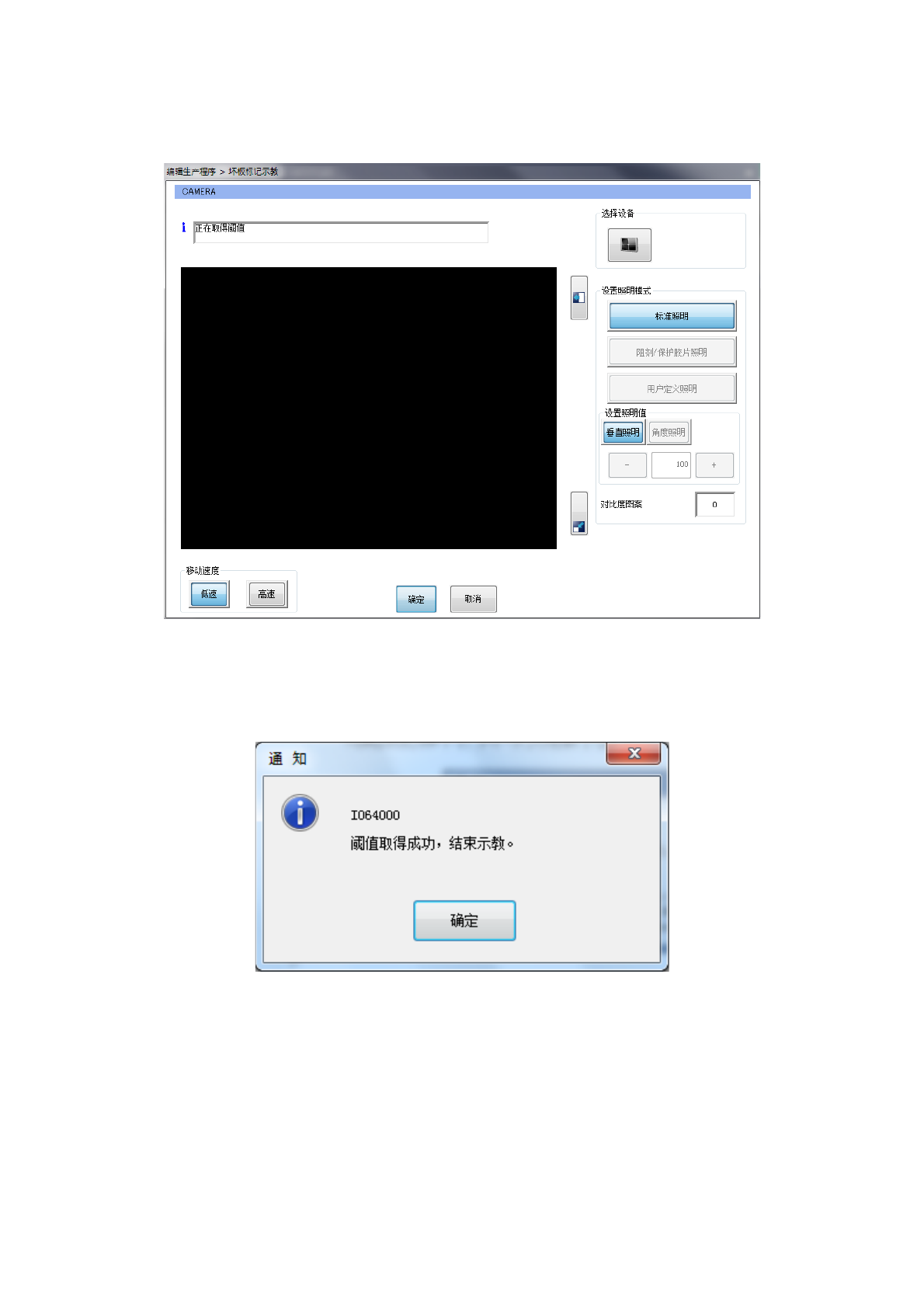 选择照明模式后,在检测框的设置中按下「确定」按钮,即显示以下对话框。